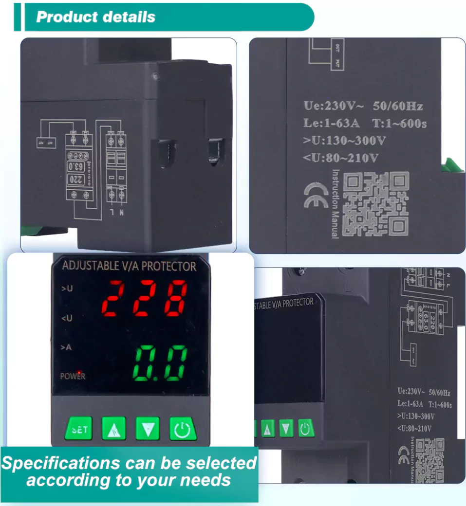 Ausgestattet mit einem digitalen Display und mit importierten modularen elektronischen Komponenten hergestellt, verfügt es über eine hohe Zuverlässigkeit und Leistung. Der Beschützer wird die Stromversorgung automatisch und schnell während abnormaler Spannungen (z. B. Überspannung, Unterspannung oder Gitterschwankungen) abbinden und stellt die Stromversorgung nach der Rückkehr der Spannung wieder her.